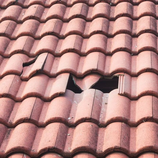 - Dakpannen zijn verschoven of gebroken door storm